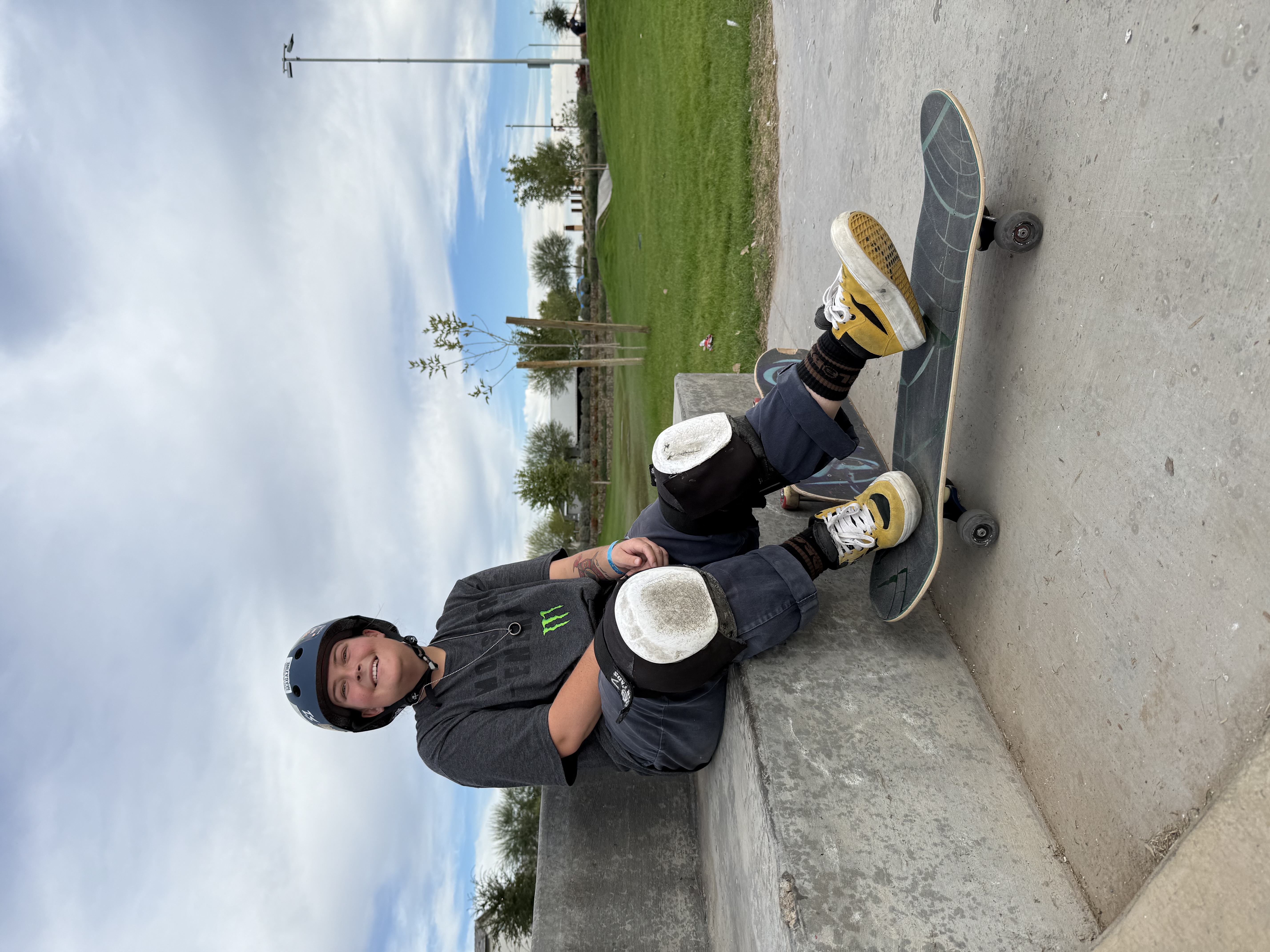Hey my name is Sydney and I’ve been skating since I was 6 yrs old but started actually learning tricks and how to do cool stuff on ramps around Feb 2024, after I had to move to AZ!